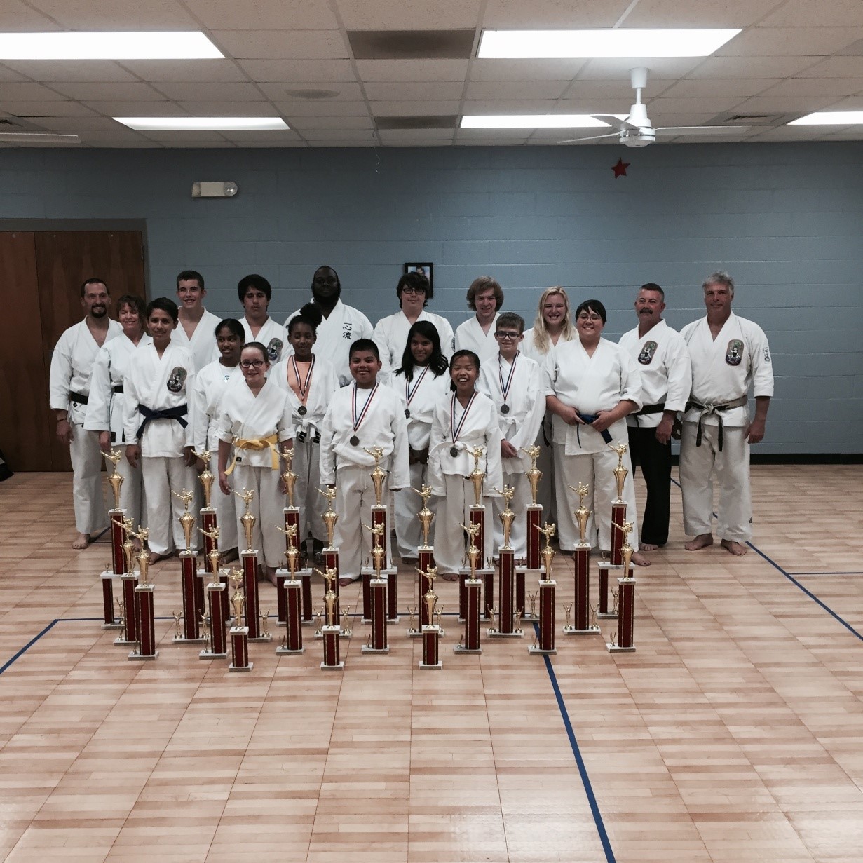 Carolina Isshinryu Academy in Monroe, North Carolina with their winnings, courtesy of Sensei Don Gyr